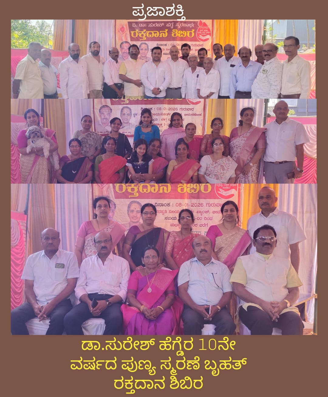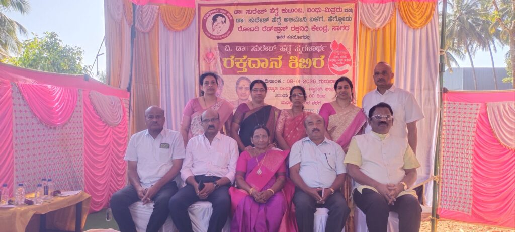 ಶಿವಮೊಗ್ಗ ಜಿಲ್ಲೆ, ಸಾಗರ ತಾಲೂಕಿನ ಹೆಗ್ಗೂಡು ಗ್ರಾಮದಲ್ಲಿ ಜನಾನುರಾಗಿ ವೈದ್ಯರಾಗಿ ಸುಮಾರು 45 ವರ್ಷಗಳ ಕಾಲ ನಿಸ್ವಾರ್ಥವಾಗಿ ಸೇವೆ ಸಲ್ಲಿಸಿದ ದಿವಂಗತ ಡಾಕ್ಟರ್ ಸುರೇಶ್ ಹೆಗ್ಡೆಯವರ 10 ನೇ ವರ್ಷದ ಪುಣ್ಯ ಸ್ಮರಣೆಯ ಅಂಗವಾಗಿ ದಿನಾಂಕ 8.1.2026 ರಂದು ಬೃಹತ್ ರಕ್ತದಾನ ಶಿಬಿರವನ್ನು ಹಮ್ಮಿಕೊಳ್ಳಲಾಗಿತ್ತು.