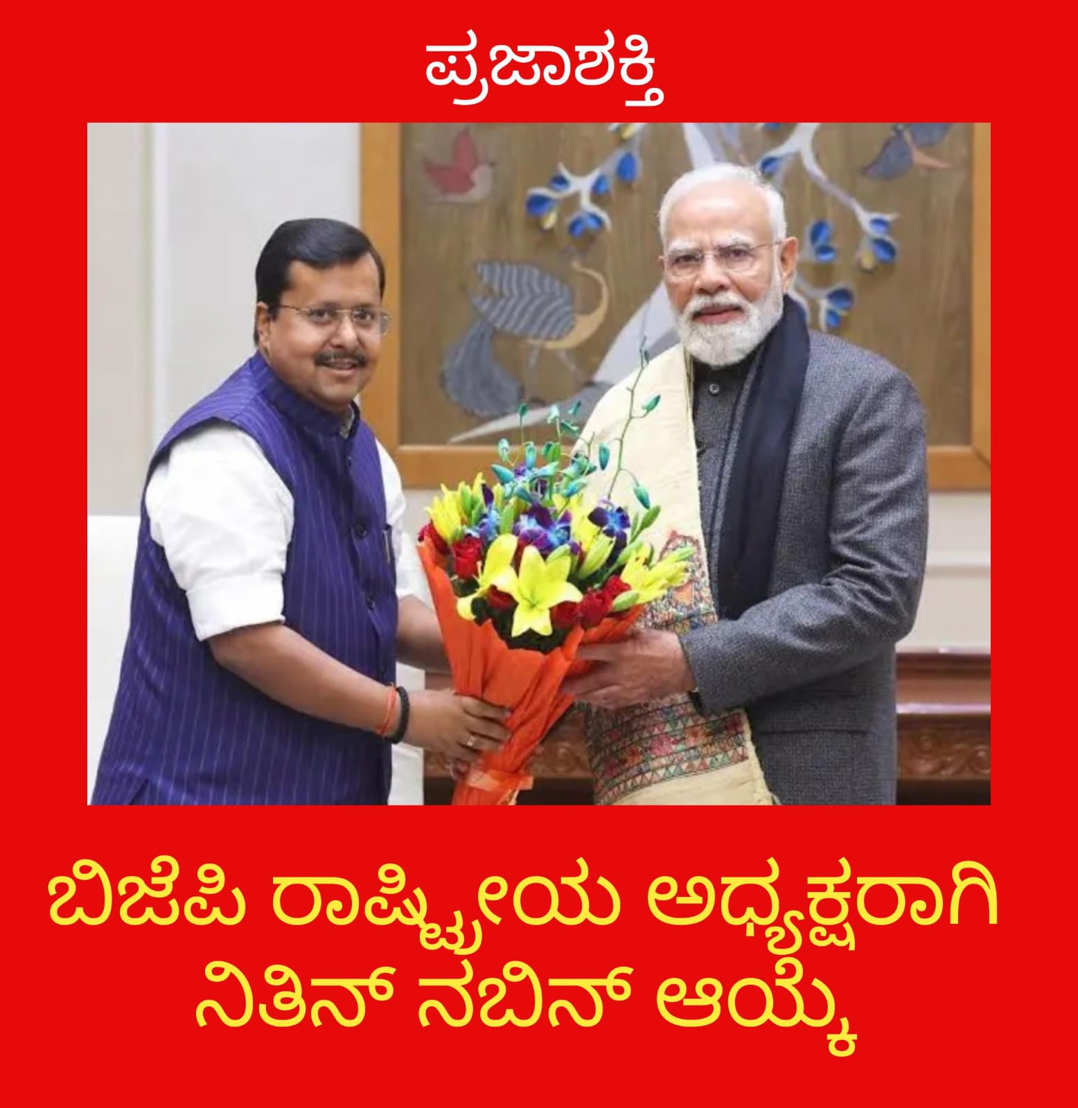 ಇಂದು ನಡೆಯಬೇಕಾಗಿದ್ದ ಚುನಾವಣೆಗೆ ನಿತಿನ್ ನಬಿನ್ ಅವರೊಬ್ಬರೇ ನಾಮಪತ್ರ ಸಲ್ಲಿಸಿದ ಕಾರಣದಿಂದ ಅವಿರೋಧವಾಗಿ ಆಯ್ಕೆಯಾಗಿದ್ದಾರೆ. ಬಿಹಾರದ ನಾಯಕ ನಿತಿನ್ ನಬಿನ್ ಅವರು ಜೆ.ಪಿ.ನಡ್ಡಾ ಅವರಿಂದ ಪಕ್ಷದ ಹುದ್ದೆ ವಹಿಸಿಕೊಳ್ಳಲಿದ್ದಾರೆ.