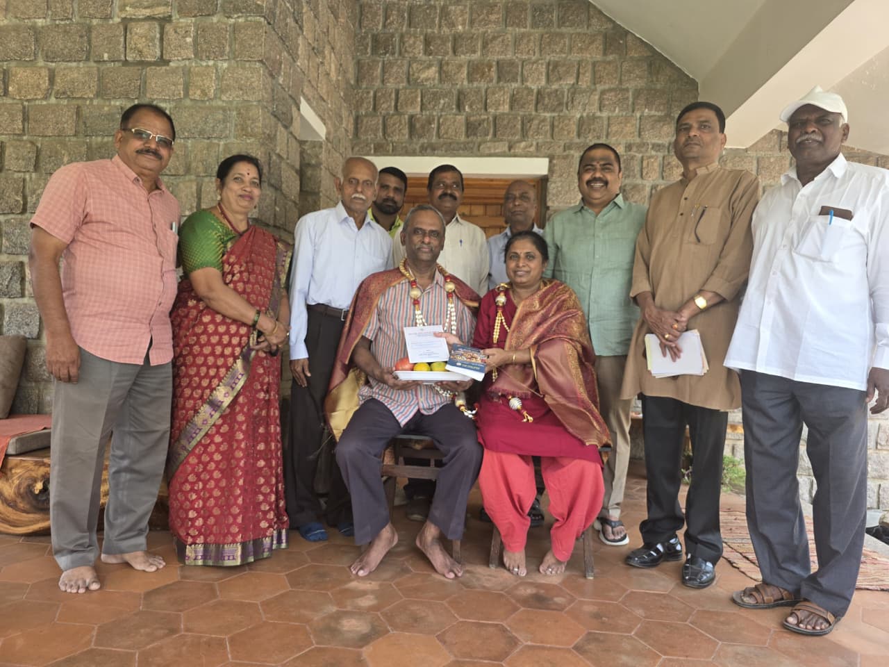 ಚಿತ್ರ : ಸಮ್ಮೇಳನಾಧ್ಯಕ್ಷರಾದ ಕೆ.ಯುವರಾಜ್ ಅವರನ್ನು ಕರ್ನಾಟಕ ಜಾನಪದ ಪರಿಷತ್ತಿನ ಜಿಲ್ಲಾಧ್ಯಕ್ಷ ಡಿ.ಮಂಜುನಾಥ ಆಮಂತ್ರಣ ಪತ್ರಿಕೆ ನೀಡಿ ಅಧಿಕೃತವಾಗಿ ಆಹ್ವಾನಿಸಿದರು.