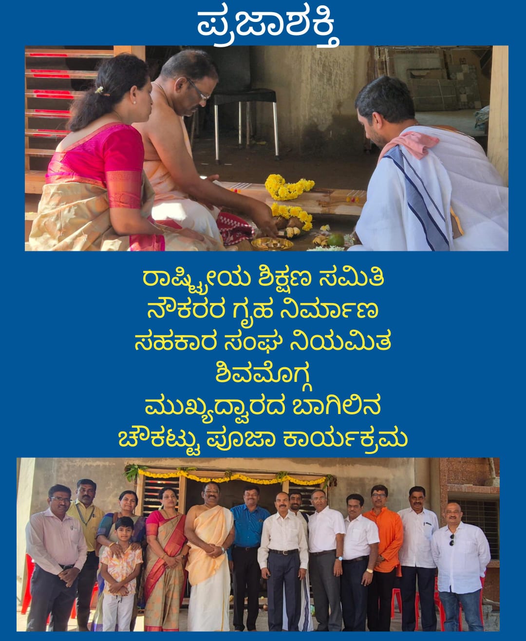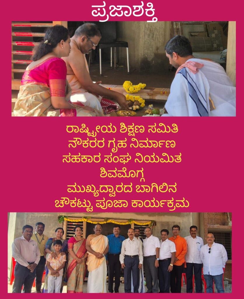 ರಾಷ್ಟ್ರೀಯ ಶಿಕ್ಷಣ ಸಮಿತಿ ನೌಕರರ ಗೃಹ ನಿರ್ಮಾಣ ಸಹಕಾರ ಸಂಘ ನಿಯಮಿತ ಶಿವಮೊಗ್ಗ ನೂತನ ಹಾಸ್ಟೆಲ್ ಕಟ್ಟಡದ ಮುಖ್ಯದ್ವಾರದ ಬಾಗಿಲು ಚೌಕಟ್ಟು ಕುರಿಸುವ ಪೂಜಾ ಕಾರ್ಯಕ್ರಮ ನಡೆಯಿತು.
