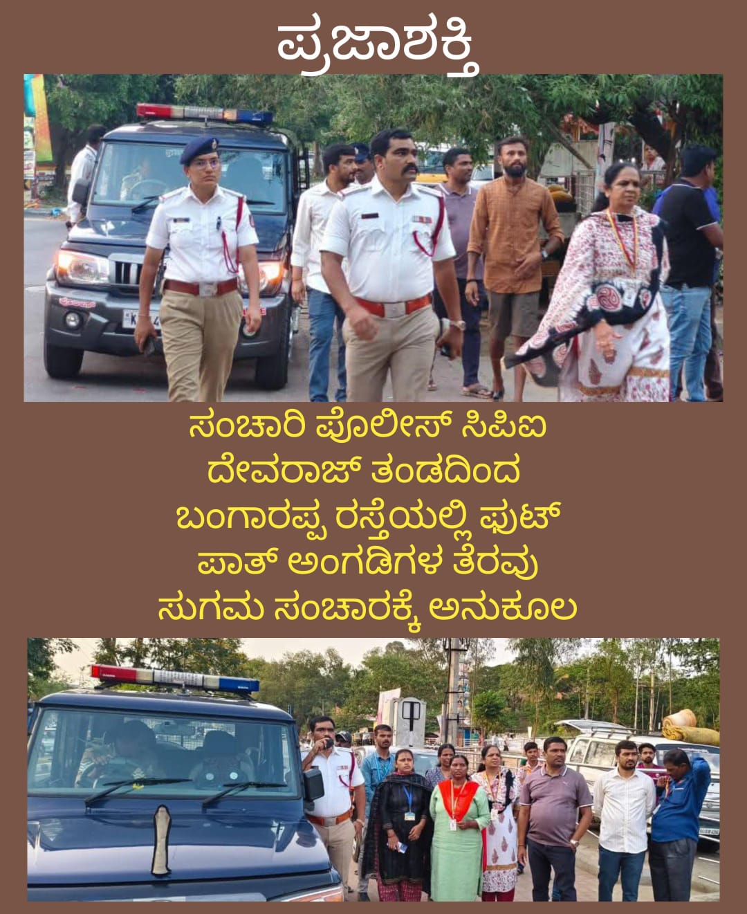 ಶಿವಮೊಗ್ಗ ನಗರದ ಅಲ್ಕೋಳ ಸರ್ಕಲ್ನಿಂದ ಡಿ.ವಿ.ಜಿ. ಸರ್ಕಲ್ವರೆಗೆ ಇರುವ ಶ್ರೀ ಎಸ್. ಬಂಗಾರಪ್ಪ ರಸ್ತೆಯಲ್ಲಿ, ಸಾರ್ವಜನಿಕ ವಾಹನಗಳು ಹಾಗೂ ಪಾದಚಾರಿಗಳ ಸುಗಮ ಸಂಚಾರಕ್ಕೆ ಅಡ್ಡಿಯಾಗುವ ರೀತಿಯಲ್ಲಿ ರಸ್ತೆಯ ಎರಡೂ ಬದಿಗಳ ಪುಟ್ಪಾತ್ ಹಾಗೂ ರಸ್ತೆಯ ಮೇಲಿಟ್ಟಿದ್ದ ತಿಂಡಿ ಗಾಡಿಗಳು ಮತ್ತು ಹಣ್ಣಿನ ಅಂಗಡಿಗಳನ್ನು ತೆರವುಗೊಳಿಸಲಾಯಿತು.