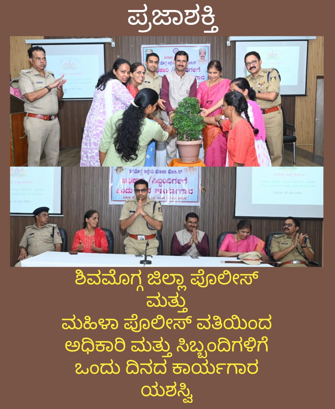 ಡಿಎಆರ್ ಪೊಲೀಸ್ ಸಭಾಂಗಣದಲ್ಲಿ ಶಿವಮೊಗ್ಗ ಜಿಲ್ಲಾ ಪೊಲೀಸ್ ಇಲಾಖೆಯಲ್ಲಿ ಕರ್ತವ್ಯ ನಿರ್ವಹಿಸುತ್ತಿರುವ ಮಹಿಳಾ ಪೊಲೀಸ್ ಅಧಿಕಾರಿ ಹಾಗೂ ಸಿಬ್ಬಂದಿಗಳಿಗೆ ಒಂದು ದಿನದ ಮನೋಸ್ಥೈರ್ಯಾಭಿವೃದ್ಧಿ ಕಾರ್ಯಾಗಾರವನ್ನು ಹಮ್ಮಿಕೊಂಡಿದ್ದು, ಮಾನ್ಯ ಶ್ರೀ ಸಂತೋಷ್. ಎಂ. ಎಸ್, ಹಿರಿಯ ಸಿವಿಲ್ ನ್ಯಾಯಾಧೀಶರು ಹಾಗೂ ಸದಸ್ಯ ಕಾರ್ಯದರ್ಶಿಗಳು ಜಿಲ್ಲಾ ಕಾನೂನು ಸೇವೆಗಳ ಪ್ರಾಧಿಕಾರ, ಶಿವಮೊಗ್ಗ ಮತ್ತು ಶ್ರೀ ನಿಖಿಲ್ ಬಿ. ಐಪಿಎಸ್, ಪೊಲೀಸ್ ಅಧೀಕ್ಷಕರು, ಶಿವಮೊಗ್ಗ ಜಿಲ್ಲೆ ರವರು ಕಾರ್ಯಕ್ರಮವನ್ನು ಉದ್ಘಾಟನೆ ಮಾಡಿದ್ದು, ಡಾ|| ವೀಣಾ ಭಟ್, ಸ್ತ್ರೀ ರೋಗ ತಜ್ಞರು ಭದ್ರಾವತಿ ಮತ್ತು ಪ್ರೊ|| ಕಿರಣ್ ಆರ್ .ದೇಸಾಯಿ, ನಿವೃತ್ತ ಪ್ರಾಧ್ಯಾಪಕರು, ಕಮಲ ನೆಹರು ಕಾಲೇಜು ಶಿವಮೊಗ್ಗ ಹಾಗೂ ಶ್ರೀ ಕಾರ್ಯಪ್ಪ ಎ. ಜಿ. ಹೆಚ್ಚುವರಿ ಪೊಲೀಸ್ ಅಧೀಕ್ಷಕರು-1, ಶಿವಮೊಗ್ಗ ಜಿಲ್ಲೆ ರವರು ಕಾರ್ಯಕ್ರಮದಲ್ಲಿ ಉಪಸ್ಥಿತರಿದ್ದರು.