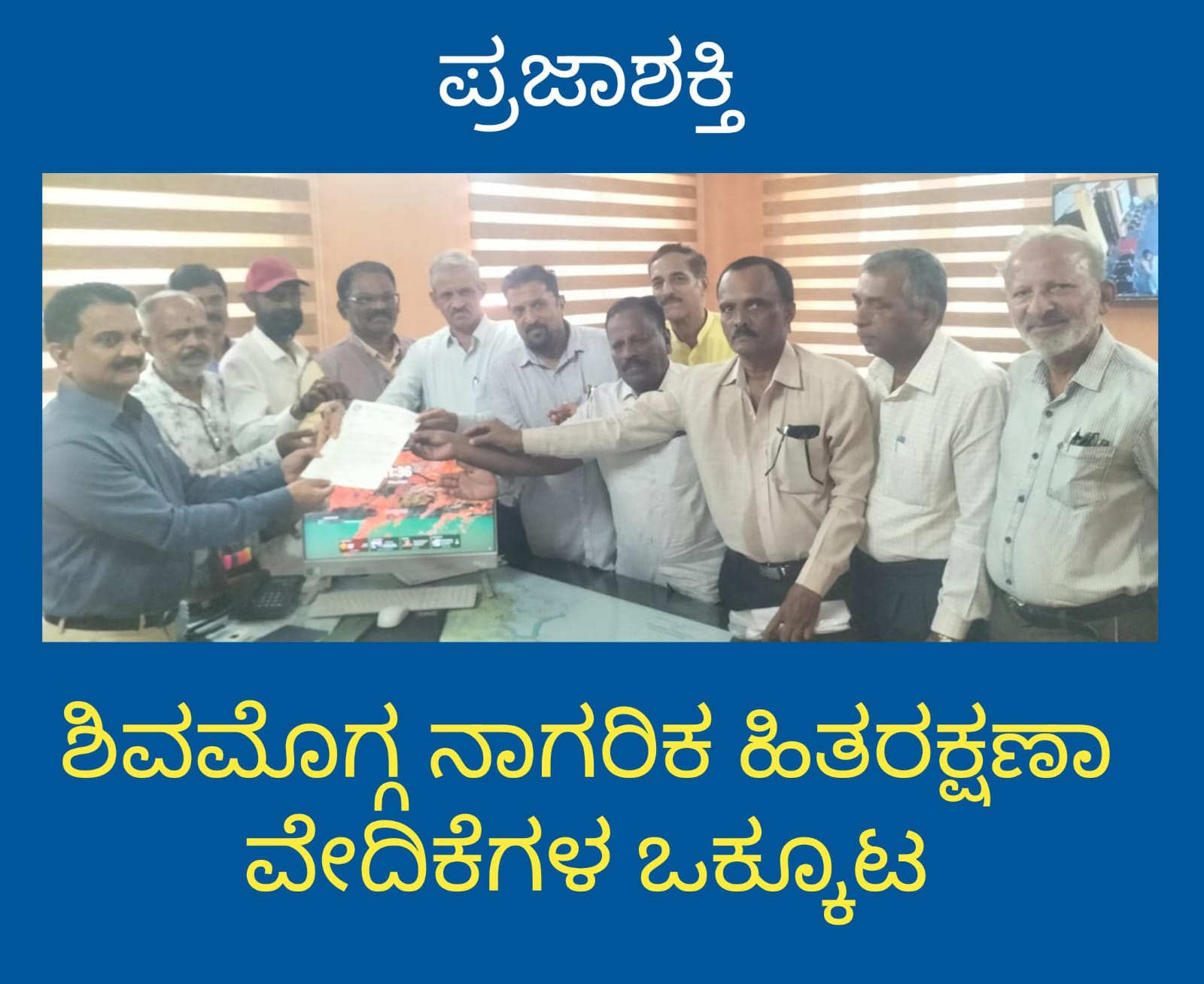 ಸರ್ಕಾರದ ಸುತ್ತೋಲೆಗೆ ವಿರುದ್ಧವಾಗಿ ಖಾತೆ ಬದಲಾವಣೆ ಶುಲ್ಕ ಹೆಸರಿನಲ್ಲಿ ಶಿವಮೊಗ್ಗ ಮಹಾನಗರ ಪಾಲಿಕೆ ಸುಲುಗೆ ಮಾಡುತ್ತಿದೆ ಎಂದು ಖಂಡಿಸಿ ಶಿವಮೊಗ್ಗ ನಾಗರಿಕ ಹಿತ ರಕ್ಷಣಾ ವೇದಿಕೆಗಳ ಒಕ್ಕೂಟದ ಪದಾಧಿಕಾರಿಗಳು ಪಾಲಿಕೆ ಆಯುಕ್ತರದ ಮಾಯಣ್ಣ ಗೌಡರವರಿಗೆ ಮನವಿ ಸಲ್ಲಿಸಿದರು.